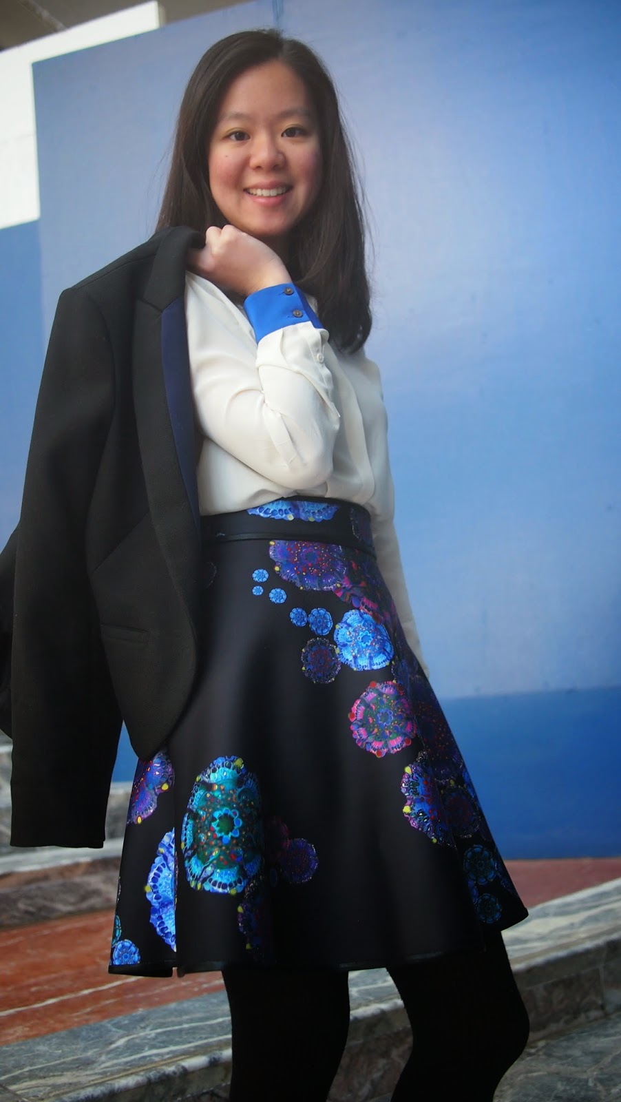 All you have to do is swap out the black pencil skirt for one with a fun print and bring out them blues by pairing it with a button up shirt with blue details. Sneak in a slither more blue onto your blazer, and who says you can't look beautifully blue when everyone else is fighting them Monday blues?