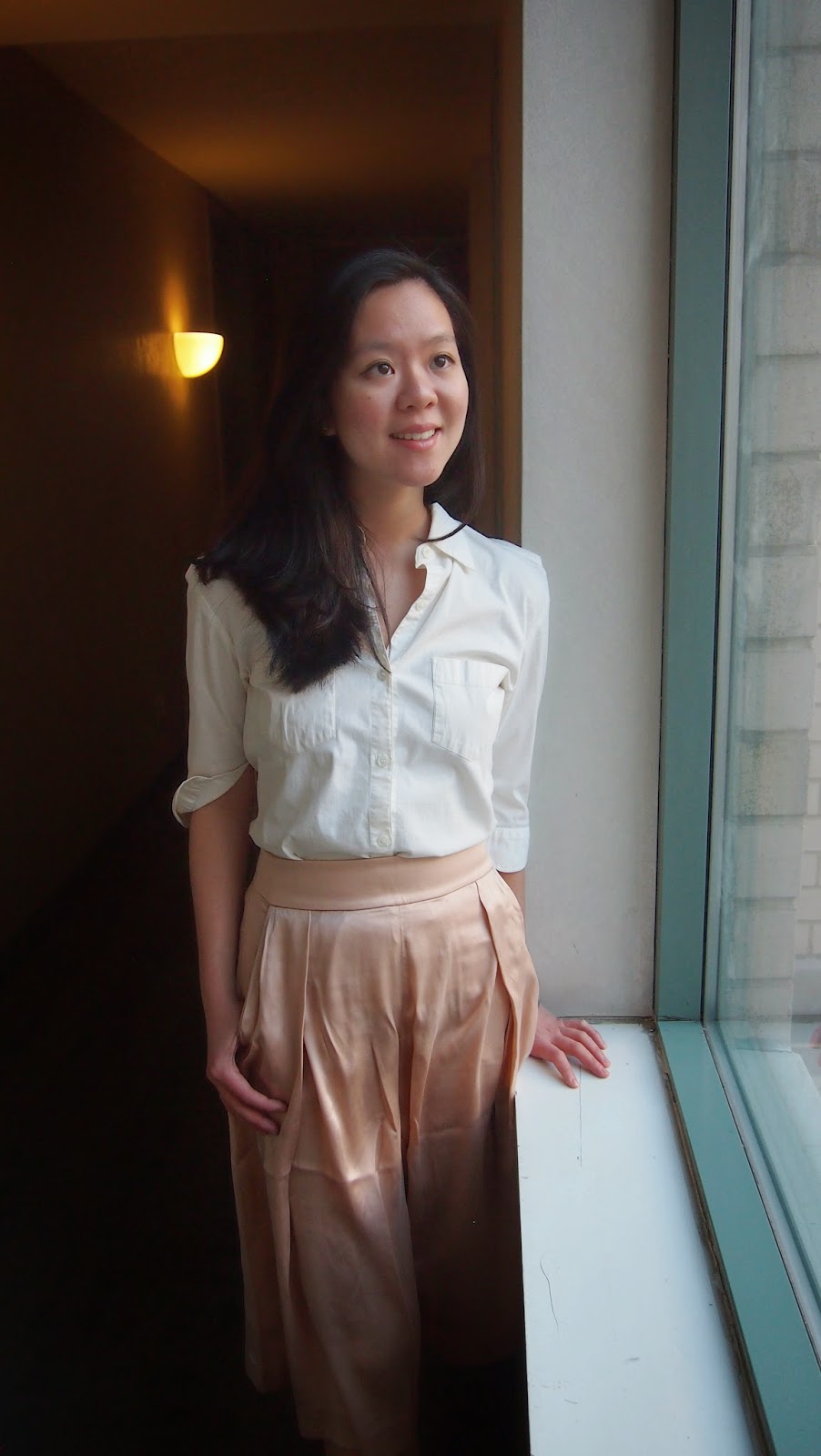 Culottes are basically wide legged pants that end below your knees or midi skirts stitched together down the middle into pants. In layman's terms - pajamas for work. Add a collared shirt, some pointy toed heels and a silk scarf (if you want a pop of color), and no one will know you were thiiiiiis close to calling in sick this morning because it seemed almost Herculean to peel yourself off of your toasty bed.